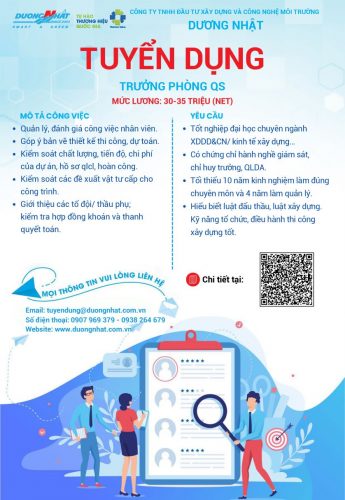 VỊ TRÍ TUYỂN DỤNG TRƯỞNG PHÒNG QS Tải về mẫu CV Upload CV X THÔNG TIN CV CỦA BẠN Bài viết liên quan Post Related 17/04/2026 NHÂN VIÊN QA ... 17/04/2026 KỸ SƯ THIẾT KẾ MEP ... 17/04/2026 TRƯỞNG NHÓM TƯ VẤN MÔI TRƯỜNG ... 20/08/2025 TRƯỞNG NHÓM QC Khu vực: TP.HCM Số lượng: 1 ... 20/08/2025 KỸ SƯ THIẾT KẾ KẾT CẤU Khu vực: TP.HCM Số lượng: 1 ... 20/08/2025 KỸ SƯ SHOP DRAWING Khu vực: TP.HCM Số lượng: 1 ... 20/08/2025 GIÁM SÁT THI CÔNG LẮP ĐẶT HỆ THỐNG XỬ LÝ NƯỚC THẢI, NƯỚC CẤP Khu vực: TP.HCM Số lượng: 1 ... 20/08/2025 CHỈ HUY TRƯỞNG THI CÔNG LẮP ĐẶT HỆ THỐNG XỬ LÝ NƯỚC THẢI, NƯỚC CẤP Khu vực: TP.HCM Số lượng: 1 ... 03/07/2025 ĐIỀU PHỐI DỰ ÁN Khu vực: TP.HCM Số lượng: 1 ... 03/07/2025 KỸ SƯ DỰ TOÁN Khu vực: TP.HCM Số lượng: 1 ... 03/07/2025 GIÁM SÁT XÂY DỰNG Khu vực: TP.HCM Số lượng: 1 ... 03/07/2025 CHUYÊN VIÊN KIỂM TOÁN NỘI BỘ Khu vực: TP.HCM Số lượng: 1 ...